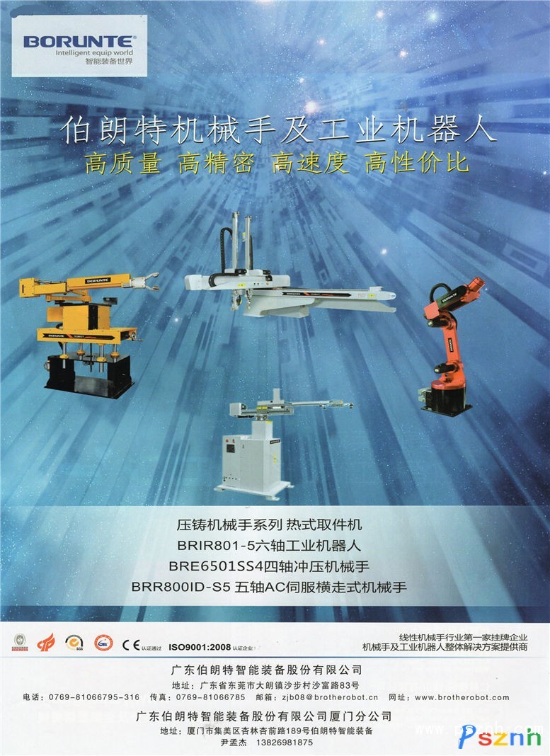 廣東伯朗特智能裝備股份有限公司是國家高新技術企業,專業生產線性機械手及工業機器人。注冊資本3450萬元,承擔國家科技部立項,獲創新資金支持,并喜獲廣東省名牌產品榮譽稱號。目前擁有員工400余人,2類廣東省名牌產品,2項發明專利正在審核階段,已取得24項實用新型專利,5項軟件著作權等;通過ISO9001:2008質量體系認證,CE認證,SUV認證;獲評標準化良好行業企業,創新創業大賽百強企業,重點創新幫扶500家高成長性中小企業,榮獲科技型中小企業創新基金,高工機器人金球獎等等。伯朗特的智能裝備系統是由80%線性機械手+20%工業機器人構成。我們相信智能裝備會像中國高鐵業一樣為國人爭光,因為中國制造聞名于世界,中國制造的突圍是由“中國制造”轉變為“中國智造”。