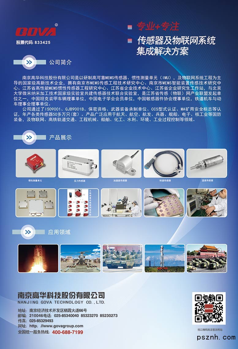 南京高華科技股份有限公司是以研制生產高可靠MEMS傳感器及傳感物聯網等系統集成業務為主營的國家級高新技術企業,江蘇省傳感(物聯)網產業聯盟發起單位,擁有南京市MEMS傳感工程技術研究中心、江蘇省企業研究生工作站。 公司通過了ISO9001、GJB9001B質量體系、保密資格、國防裝備承制單位、CCS型式認證、MA礦用安全標志等認證,擁有多項技術發明專利。