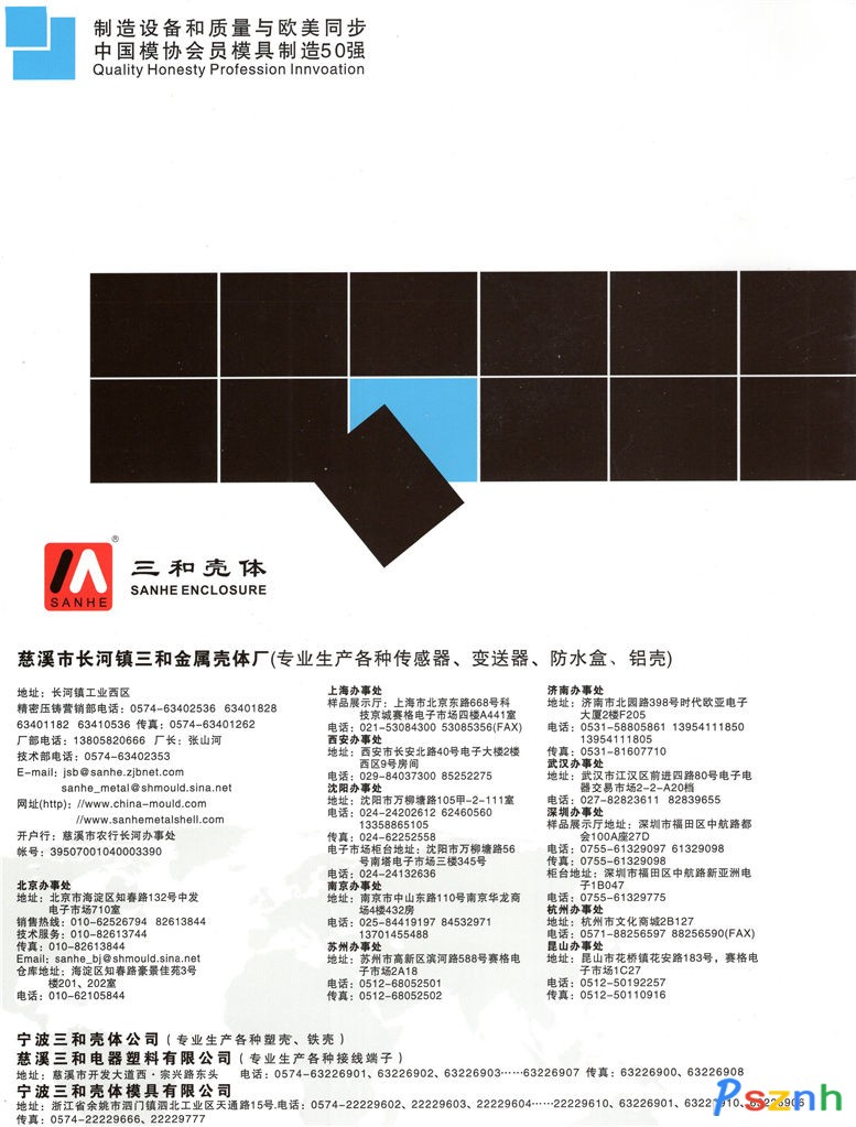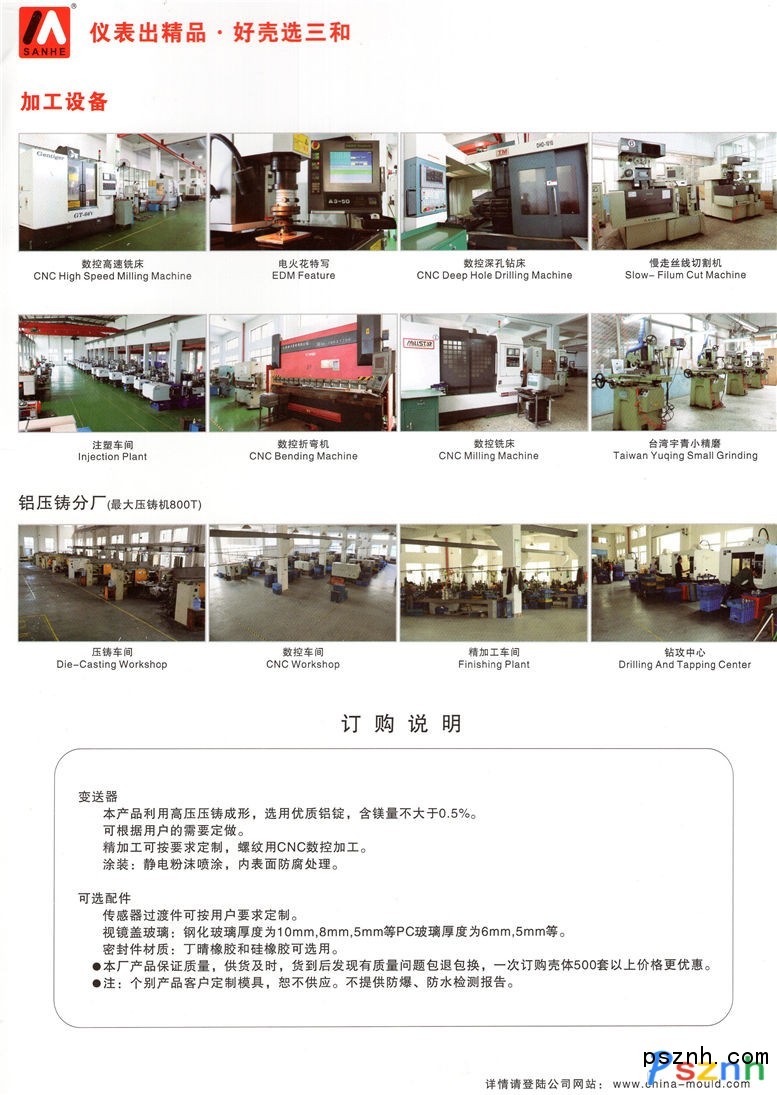 2010年公司又在寧波余姚投巨資7000多萬,新建寧波三和殼體模具有限公司,新購一批與歐美同步的模具制造及產品加工設備,其中注塑機80多臺,另投入200萬購置一臺德國進口點膠機,用于防水密封箱加工,可使防水等級達到IP67以上。