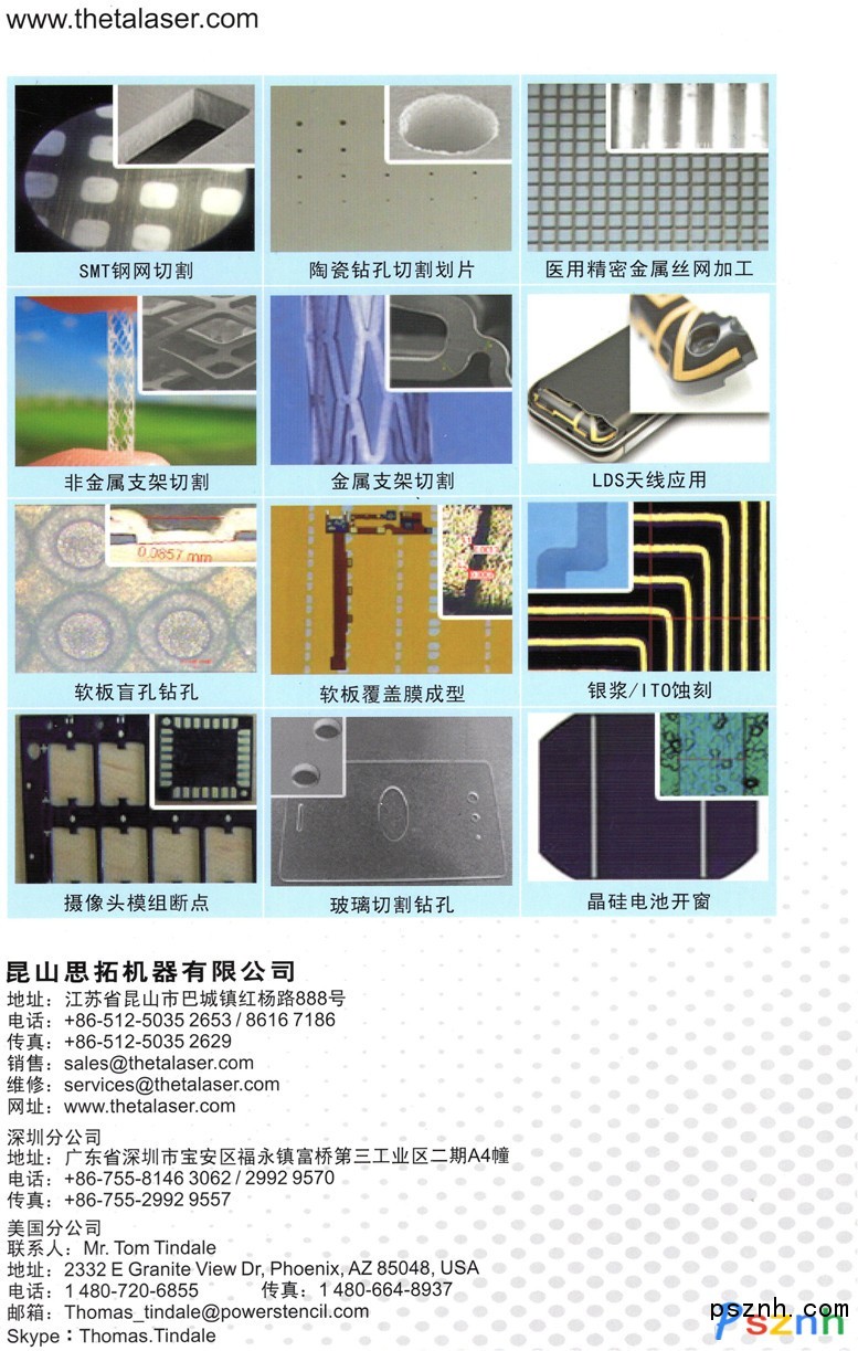 思拓已經研制了應用于集成電路產品的多種高精密激光微加工設備,還將開發其它高新技術領域產品的應用,從而建立一整套高精密激光加工設備系列,這些產品應用包括HDI電路板,太陽能電池,半導體硅片,醫療器械,激光精密微加工,精密金屬材料加工,超薄玻璃加工等。