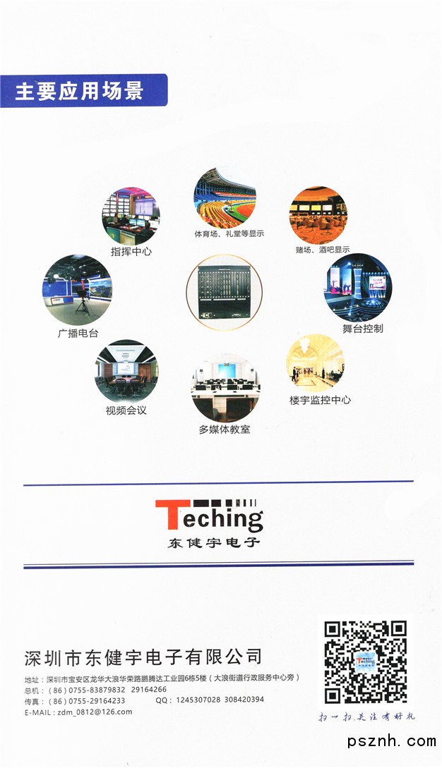 深圳市東健宇電子有限公司其前身為深圳市達強科技有限公司。 2006 年元月改名為深圳市東健宇電子有限公司。深圳市東健宇電子有限公司是一家專業從事閉路電視監控產品研發-生產-銷售的高科技安防企業。本公司主要生產Teching(東健宇)品牌系列( 矩陣主機、鍵盤、安防集成管理軟件 );Teching(東健宇)品牌系列VGA/RGB高清矩陣;Teching(東健宇)品牌系列HDMI、DVI、HD-SDI等高清數字矩陣;美國DVT 數字光纖傳輸系統;