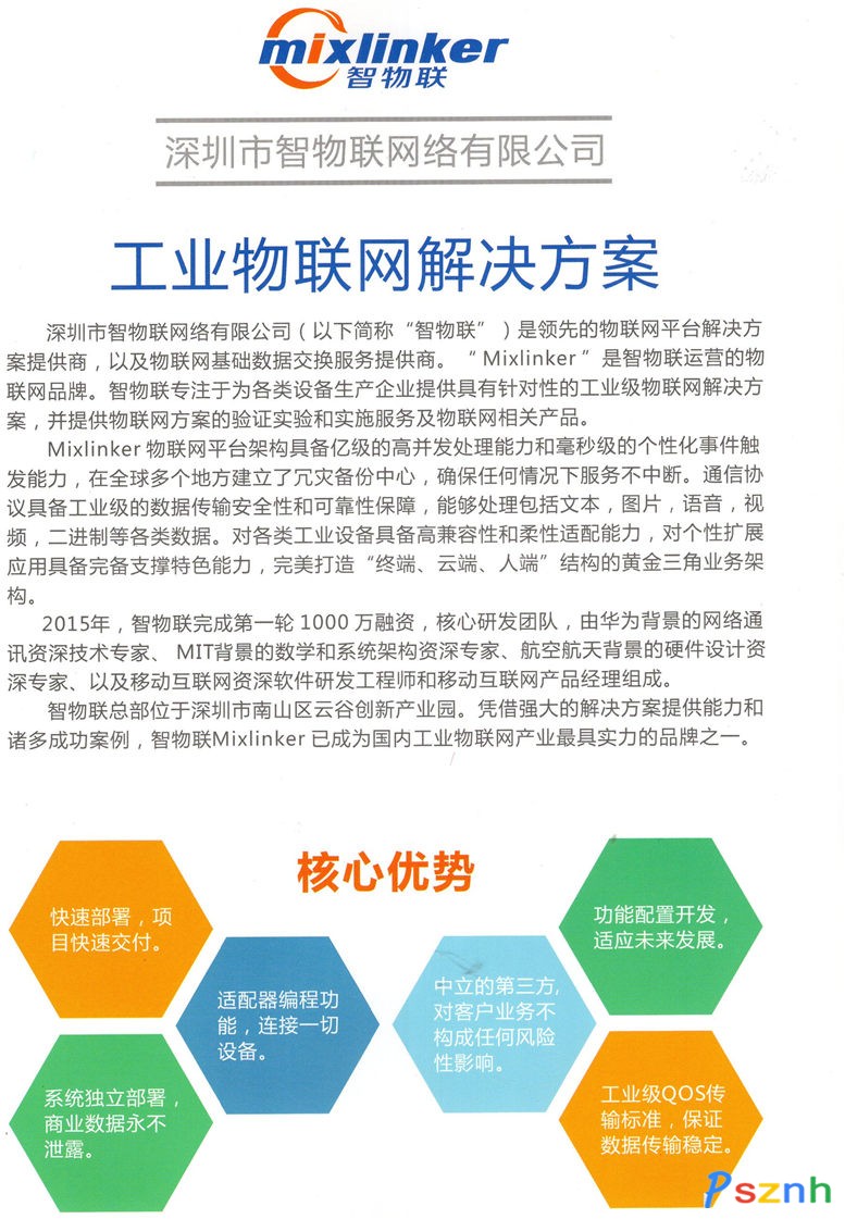 深圳市智物聯網絡有限公司(以下簡稱“智物聯”)是領先的物聯網平臺解決方案提供商,以及物聯網基礎數據交換服務提供商。“Mixlinker”是智物聯運營的物聯網品牌。智物聯專注于為各類設備生產企業提供具有針對性的工業級物聯網解決方案,并提供物聯網方案的驗證實驗和實施服務和物聯網相關產品。