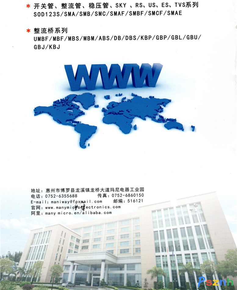 惠州市瑪尼微電子科技有限公司 普通整流二極管(STD) 超快恢復二極管(FR、HER、UF、SF) 肖特基二極管(SKY)瞬態抑制電壓二極管(TVS)系列