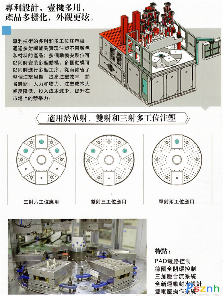 (4). 主要設備及特點:CNC電腦鑼車10臺(OKUMA、MAKINO、YASDA、ROKU-RUKU)線切割機10臺(MAKINO、AGIE、SODIC、ARD)注塑機113臺(日精樹脂、東芝、JSW)。十萬級無塵(噴油)工作室、2臺CMM三元次測量儀(英國STAUBLI)。全部模具3D設計、全部EDM電極采用統一的條形碼管理,在業內極少數廠家能做到這種管理。特別是ETCHING蝕紋;雕刻;研磨全在公司內加工,業內較少見。CMK及SPG等統計方法管理膠件公差,制模交期特快,每月制模40-80套。