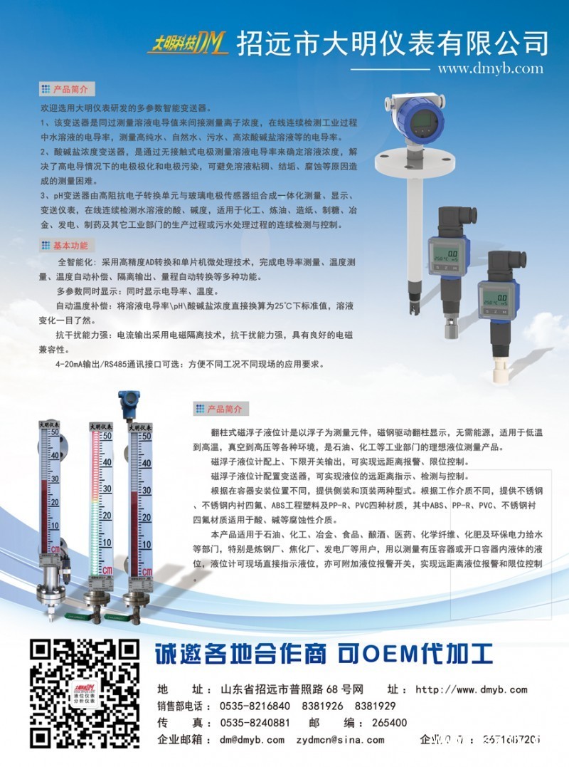 分析儀表_物位儀表_壓力儀表_智能顯示_控制記錄儀表_靜壓式液位變送器分析儀表_物位儀表_壓力儀表_智能顯示_控制記錄儀表_靜壓式液位變送器_酸堿濃度變送器_液位計(jì)_多國(guó)儀表展-招遠(yuǎn)市大明儀表有限公司點(diǎn)擊:4737 評(píng)論:0 查看原圖