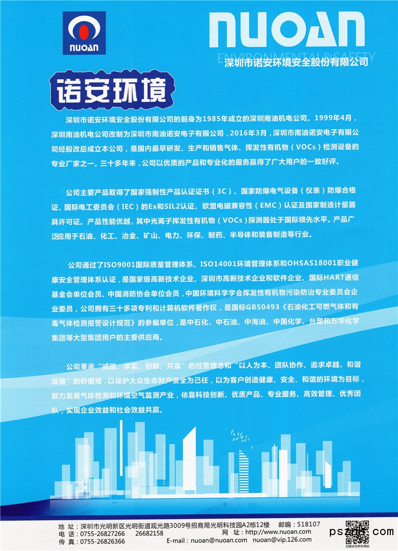 公司主要產品取得了國家強制性產品認證證書(3C)、國家防爆電氣設備(儀表)防爆合格證、國際電工委員會(IEC)的Ex和SIL2認證、歐盟電磁兼容性(EMC)認證及國家制造計量器具許可證。產品性能優越, 其中光離子揮發性有機物(VOCs)探測器處于國際領先水平。產品廣泛應用于石油、化工、冶金、礦山、電力、環保、制藥、半導體和裝備制造等行業。