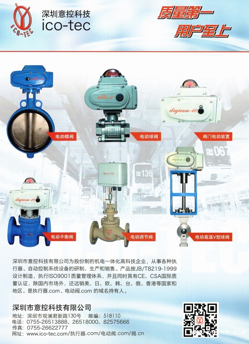 經營范圍:研制、開發、生產各類自動化控制裝備。主營產品為智能調節型digicon系列、普通型ulli系列閥門電動裝置(回轉型、直線型),電動不銹鋼線性球閥,電動球閥,電動蝶閥、電動調節閥。研發并生產了各種特殊功能的電動執行器:如緊急復位電動執行器(是彈簧復位執行器的換代產品)、防爆型電動裝置、電子式過載保護閥門驅動裝置,供電電源可選:AC220/24V、AC380V;直流DC24V/220V等多種。