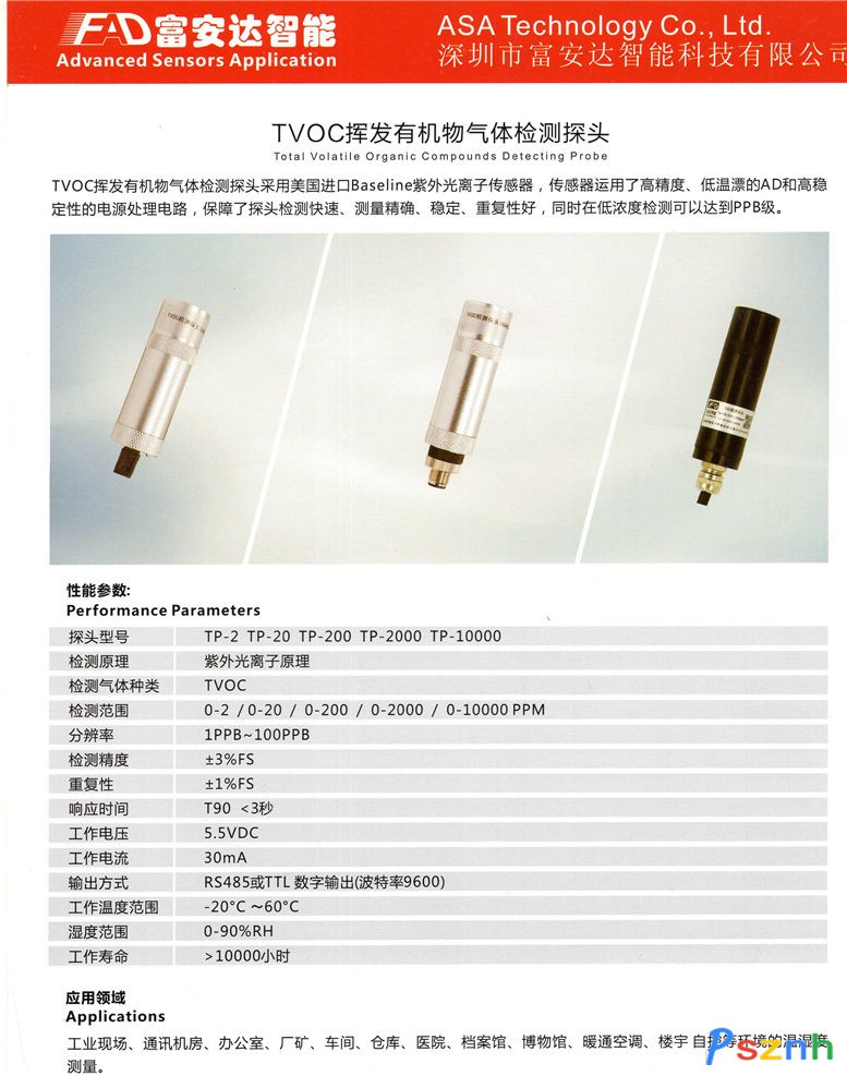 深圳市富安達智能科技有限公司(富安達智能,ASA)創立于2003年,已成為是中國傳感器及整體解決方案的領軍企業,是專業從事國際領先傳感器應用硬件、軟件及相關系統的應用設計、服務和銷售服務的專業系統配套方案提供商,在國內與多所高校和多個研究院所建立了長期緊密的技術合作關系,并與國外多家公司建立了長遠的戰略伙伴關系。 深圳富安達提供:氧氣傳感器(O2),六氟化硫傳感器(SF6),PID傳感器,TVOC傳感器,一氧化碳傳感器(CO),二氧化硫傳感器(SO2),一氧化氮傳感器(NO),CO2紅外傳感器,甲醛傳感器(CH2O),臭氧傳感器(O3),硅烷傳感器(SIH4),氨氣傳感器(NH3),磷化氫傳感器(PH3),硫化氫傳感器(H2S),乙烯傳感器(C2H4),氯氣傳感器(CL2),氫氣傳感器(H2),氯化氫傳感器(HCL),二氧化氮傳感器(NO2),氰化氫傳感器(HCN),過氧化氫傳感器(H2O2),環氧乙烷傳感器(ETO),溴化氫傳感器(HBr),四氯化鈦傳感器(TICL4), 可燃氣體傳感器,紅外光源,紅外探測器,四氫噻吩傳感器(C4H8S),鍺烷傳感器(GeH4),三氯化砷傳感器(AsCl3),三氟化砷傳感器(AsF3),丁硫醇傳感器(C4H10S),二氧化氯傳感器(CLO2),甲胺傳感器(CH3NH2),硫氫甲烷傳感器(CH3SH),硫酰氟傳感器(SO2F2),光氣傳感器(COCL2),四氯化錫傳感器(SnCl4),六氟化鎢傳感器(WF6),乙醇傳感器(C2H6O),一氯甲烷傳感器(CH3CL),三氯甲烷傳感器(CHCL3),四氯甲烷傳感器(CCL4),三聚氟氰傳感器(C3F3N3),異丙醇傳感器(C3H8O),甲醇傳感器(CH4O), 汽車氧傳感器,潛水氧傳感器,有毒氣體傳感器,壓力傳感器。