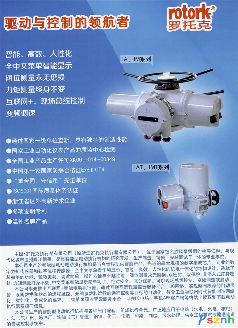 本公司生產的多回轉、直行程、角行程電動裝置與各種閥門配套,組成執行單元。廣泛地應用于電站(水電、火電、核電)、油(氣)田、煉油廠、輸油(氣)管道、鋼鐵、化工、化肥、制藥、印染、制糖、污水處理、供水工程等汽液輸送管道的自動控制系統中,既能滿足頻繁調節控制,又能滿足斷續控制的要求。并能實現現場總線智能測控。