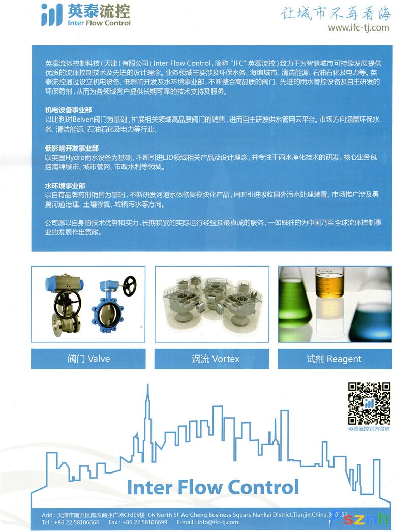 英泰流體控制科技(天津)有限公司【Inter Flow Control,簡稱“IFC”英泰流控】致力于為智慧城市可持續發展提供優質的流體控制技術及先進的設計理念。英泰流控以閥門銷售為基礎,擴展相關領域高品質閥門的銷售,進而自主研發供水管網云平臺。市場方向涵蓋環保水務、清潔能源、石油石化及電力等行業。英泰流控通過旗下分公司(英泰水工程及英泰環保)拓展環保水務、海綿城市、城市水環境、土壤修復、清潔能源、石油石化及電力等多領域發展。其中,