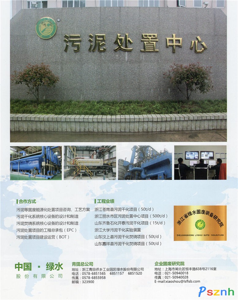 公司下屬子公司——麗水青山環保有限公司經營的污泥干化焚燒發電,整套系統為全密封環保設計,日處理污泥量500噸,無二次污染,使污泥資源化、減量化和無害化,達到節能減排和發展循環經濟的目的。