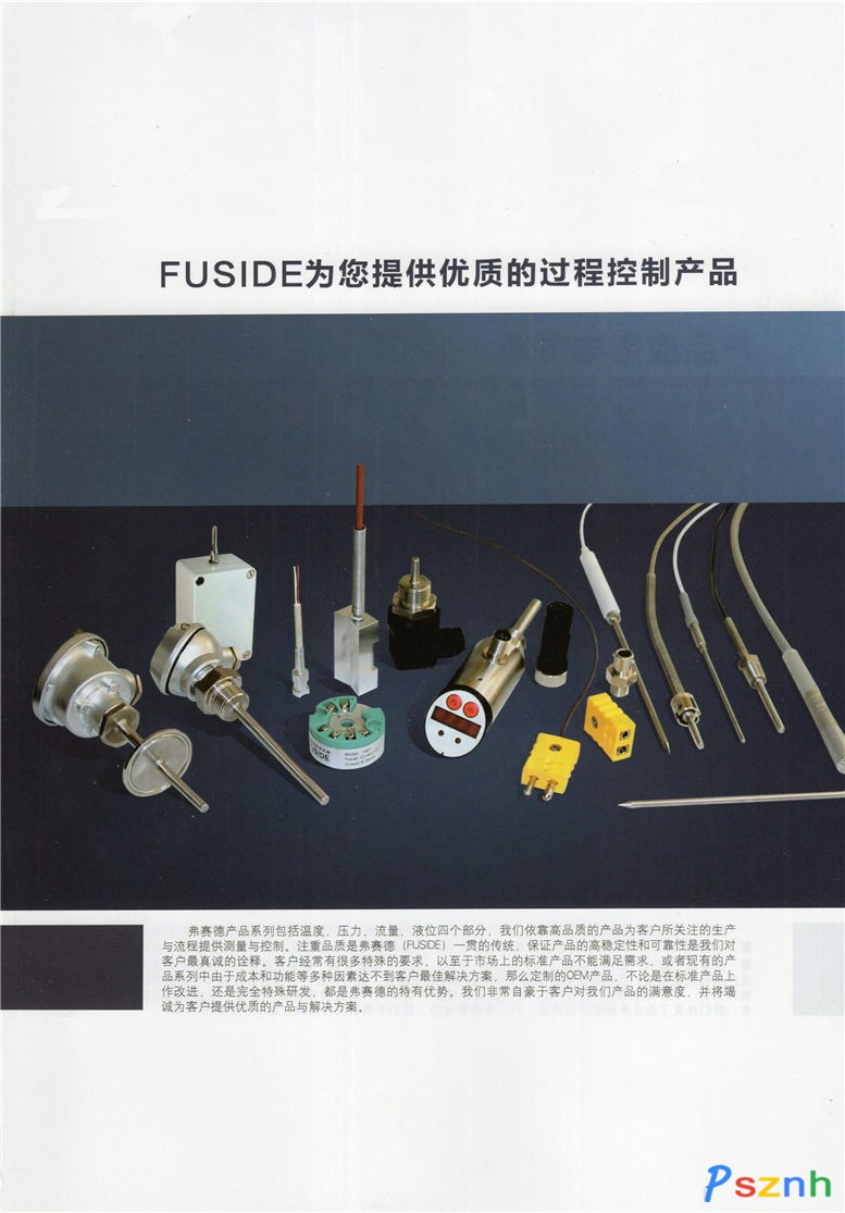 弗賽德產品系列包括:RTD熱電阻、熱電偶、溫度開關、雙金屬溫度計、溫度變送器、溫度控制單元以及壓力與液位測量儀表,依靠高品質的產品為客戶所關注的生產與流程提供測量與控制。注重品質是弗賽德(FUSIDE)一貫的傳統,保證產品的高穩定性和可靠性是我們對客戶最真誠的詮釋。我們非常自豪于客戶對我們產品的滿意度,并將竭誠為客戶提供優質的產品與解決方案。同時發揮弗賽德的特有優勢,在標準產品上作改進或完全特殊研發定制OEM產品,以滿足客戶特殊需求,給客戶提供最佳解決方案。