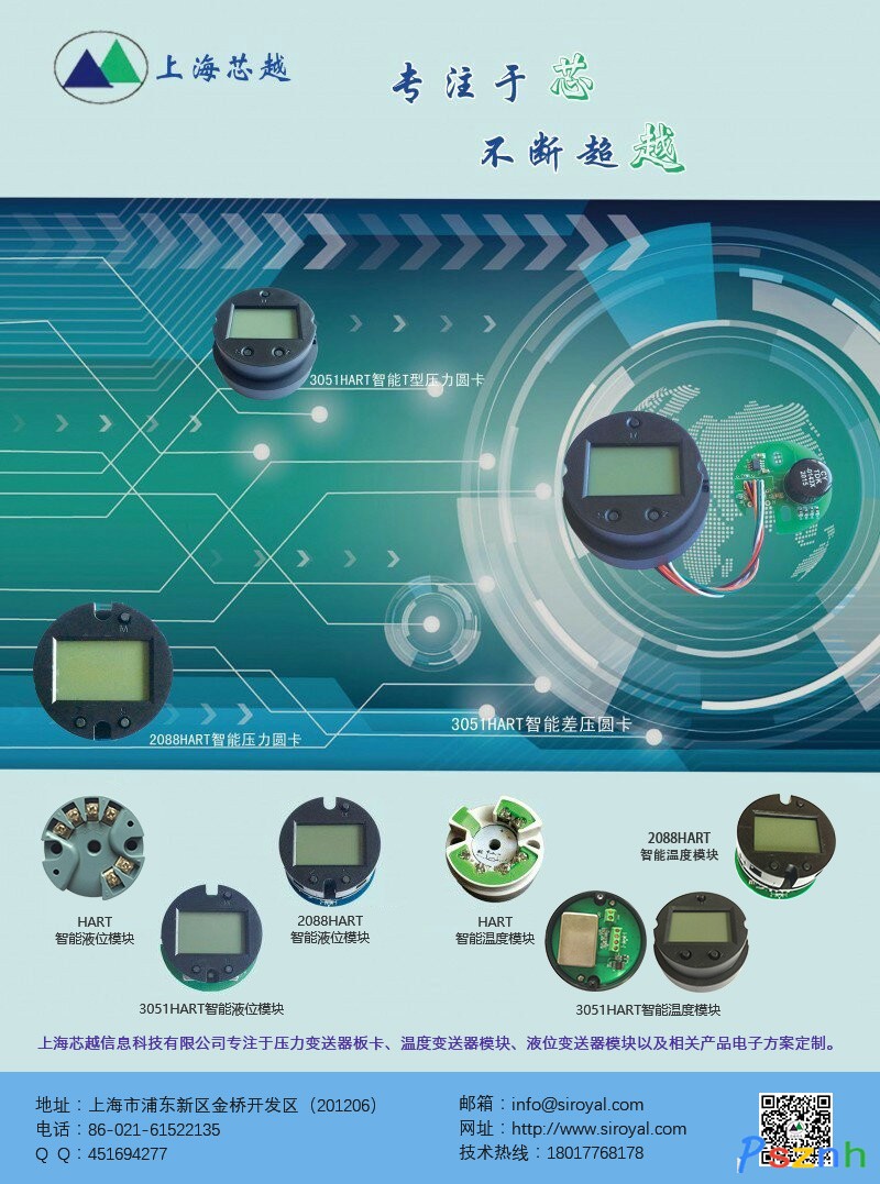 壓力變送器板卡 _溫度變送器模塊_ 液位變送器模塊_工業(yè)自動(dòng)化儀表-上海芯越信息科技有限公司