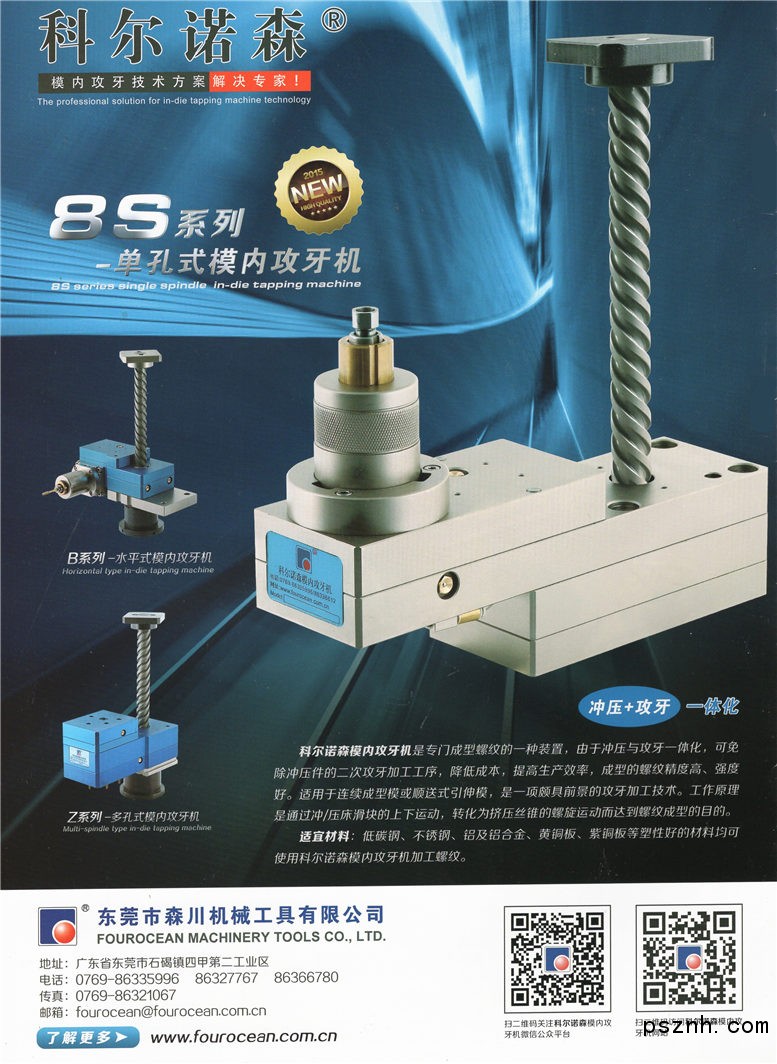 東莞市森川機(jī)械工具有限公司,總部位于東莞市石碣鎮(zhèn),是一家集研發(fā)、生產(chǎn)、銷售“科爾諾森”品牌模內(nèi)攻牙機(jī)和提供沖壓自動(dòng)化系統(tǒng)技術(shù)整合于一體的高新企業(yè)。作為中國(guó)模內(nèi)攻絲技術(shù)先驅(qū)的森川公司。一直以來重視自主研發(fā)和市場(chǎng)的開拓整合,擁有自主知識(shí)產(chǎn)權(quán)的“科爾諾森”品牌及相關(guān)30多項(xiàng)技術(shù)發(fā)明、外觀等專利。在國(guó)內(nèi)模內(nèi)攻牙技術(shù)領(lǐng)域有著影響深遠(yuǎn)的領(lǐng)導(dǎo)地位。