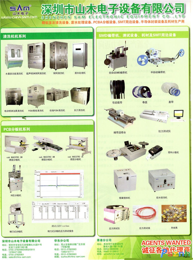深圳市山木電子設(shè)備有限公司專業(yè)從事精密濕法清洗設(shè)備(鋼網(wǎng)清洗機(jī),絲網(wǎng)清洗機(jī),旋轉(zhuǎn)噴淋治具清洗機(jī),PCB /PCBA清洗機(jī))、分板機(jī)、SMT周邊設(shè)備(零件計(jì)數(shù)器,錫膏攪拌機(jī))及半導(dǎo)體編帶設(shè)備和耗材的生產(chǎn)、銷售、服務(wù)。公司創(chuàng)立于2005年,是一家致力于電子產(chǎn)品制造業(yè)科技企業(yè),有雄厚的技術(shù)實(shí)力、卓越的服務(wù)贏得了廣大業(yè)界的信賴和支持。公司在深圳,蘇州均有注冊。山木電子先后取得多家國內(nèi)外知名廠家設(shè)備的銷售代理資格,銷售網(wǎng)絡(luò)及服務(wù)團(tuán)隊(duì)均以倍增的速度發(fā)展。應(yīng)國內(nèi)市場的需求,公司相繼在華東、華北、華西等地區(qū)設(shè)立辦事處。