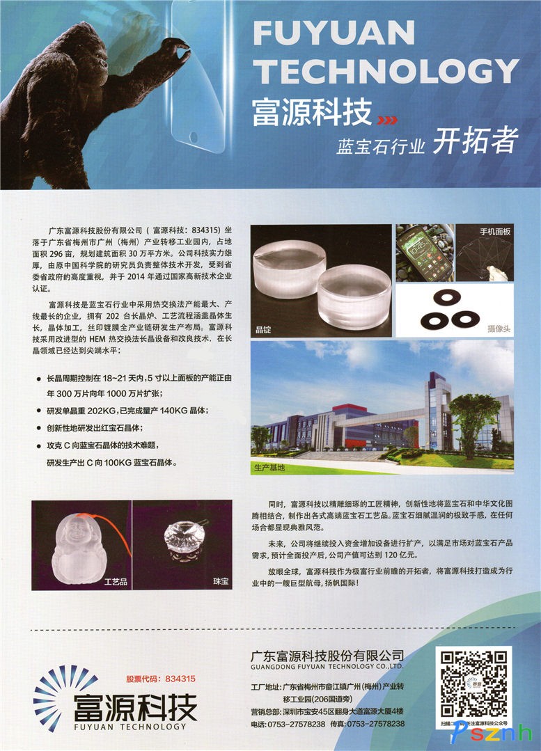 廣東富源科技股份有限公司(富源科技:834315)成立于2011年6月22日,注冊(cè)資金達(dá)6億元,一期工程計(jì)劃投資38億人民幣,是一家集研發(fā)、生產(chǎn)與銷售為一體的大尺寸高質(zhì)量藍(lán)寶石材料供應(yīng)商。公司坐落于廣東省梅州市廣州(梅州)產(chǎn)業(yè)轉(zhuǎn)移工業(yè)園內(nèi),占地面積296畝,規(guī)劃建筑面積30萬(wàn)平方米。公司科技實(shí)力雄厚,由原中國(guó)科學(xué)院的研究員負(fù)責(zé)整體技術(shù)開發(fā),并于2014年通過國(guó)家高新技術(shù)企業(yè)認(rèn)證。廣東富源科技股份有限公司擁有藍(lán)寶石領(lǐng)域博士生導(dǎo)師及豐富行業(yè)經(jīng)驗(yàn)的工藝技術(shù)團(tuán)隊(duì),承擔(dān)國(guó)家、廣東省多項(xiàng)新材料關(guān)鍵技術(shù)科研攻關(guān)項(xiàng)目。公司采用全球先進(jìn)的熱交換法大尺寸長(zhǎng)晶技術(shù),憑借在藍(lán)寶石專用設(shè)備領(lǐng)域的技術(shù)儲(chǔ)備,結(jié)合多年的光學(xué)加工經(jīng)驗(yàn)和技術(shù)進(jìn)行研發(fā)、生產(chǎn)和創(chuàng)新。公司致力于通過領(lǐng)先的技術(shù)、優(yōu)異的產(chǎn)品和卓越的服務(wù),打造藍(lán)寶石產(chǎn)業(yè)領(lǐng)域強(qiáng)勁的核心競(jìng)爭(zhēng)力!
