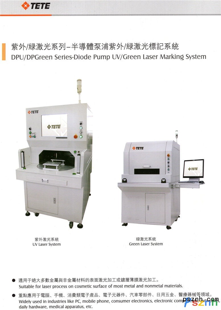 深圳泰德激光科技有限公司不僅擁有自己獨立的技術研發與產品開發中心,獲批多項發明專利與軟件著作權,而且還與相關院所密切合作承擔國家863重大科研項目。迄今,公司已生產、銷售多系列激光加工系統,為國內外用戶提供專業的工業激光解決方案。主力產品精密激光切割/鉆孔系統、三維動態變焦激光標記系統、IC雙軌全自動/半自動激光標記系統、DPF系列--半導體泵浦光纖激光標記系統、DPY系列--半導體側面泵浦激光標記系統、紫外光/綠光系列、DPV系列--半導體端面泵浦激光標記系統、DPF-W系列--光纖激光焊接系統、LPY系列--光纖傳輸激光焊接系統、激光錫焊系統、CO2系列--激光標記/切割系統,CO2系列--平面激光切割系統,已廣泛地應用于各行業的激光標記、焊接與切割,完整的產品組合,滿足了用戶多樣化的加工需求。