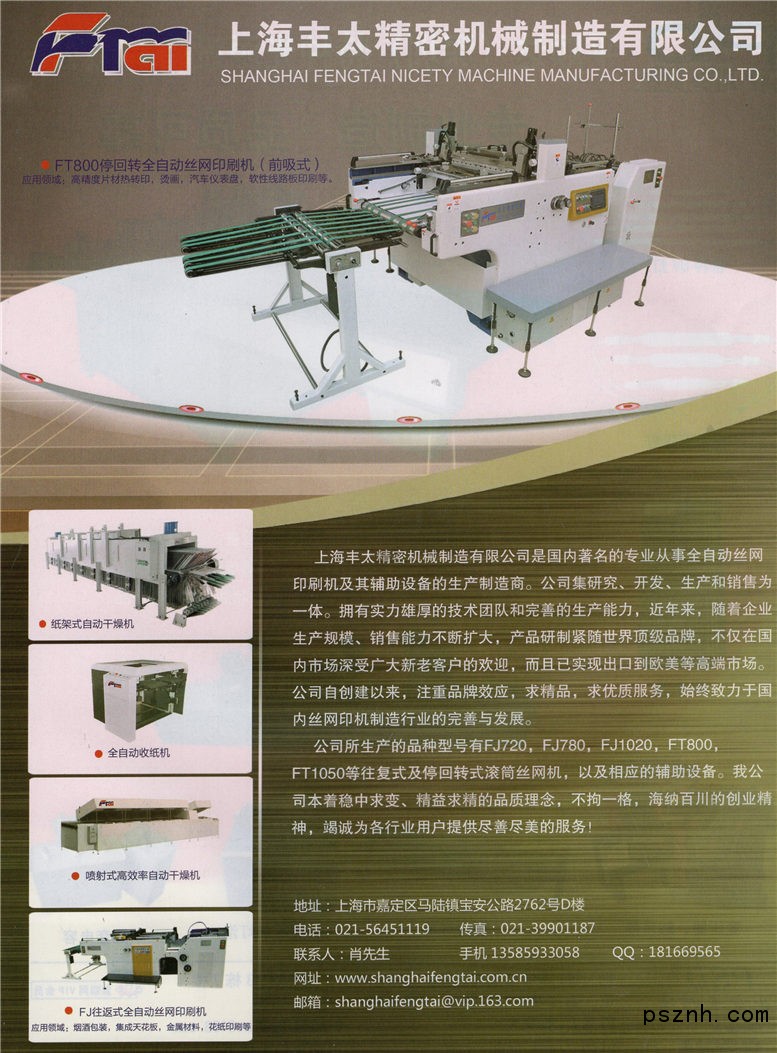 上海豐太精密機械制造有限公司 FT800停回轉全自動絲網印刷機 FTZJ型紙架式自動干燥機 全自動磨刀機