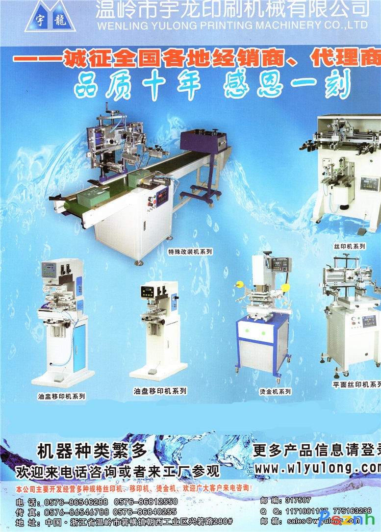 溫嶺市宇龍印刷機械有限公司 絲印機 移印機 燙金機 平面絲印機