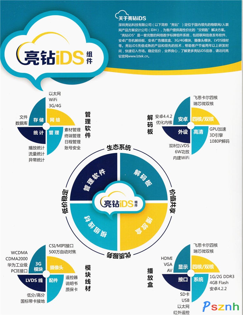 深圳亮鉆科技有限公司(以下簡稱“亮鉆科技”)創立于2014年,公司定位于國內領先的物聯網/人聯網產品方案設計公司(IDH),為客戶提供高性價比的“交鑰匙”解決方案,包括完整的系統硬件和軟件,提供給客戶即可進入生產。 亮鉆科技最先重磅推向市場的系統級方案為電信級聯網數碼告牌完整解決方案和觸摸式信息交互方案。亮鉆科技為客戶提供管理發布平臺軟件、高清安卓廣告機解碼板、3G模塊、攝像頭模塊、LVDS線材等主料和配套器件,相關產品通過CE/FCC/RoHS/CCC等認證。亮鉆科技憑借產品和技術幫助客戶省略兩年以上的研發過程,快速切入市場。 基于強大的自主創新能力和對行業需求的深刻理解,亮鉆科技在相關產品領域實現了跨越式的發展,有能力為用戶提供最全面、最周到的應用解決方案,目前已經成為中國該領域中最具實力、最具知名度的硬件、軟件和服務供應商。亮鉆科技將以專業的技術力量、熱誠的服務態度和完善的售后服務為廣大的客戶提供優質的產品,并為推動中國物聯網/人聯網產業的發展奉獻自己的力量。 公司口號:穩定低價 行業良心