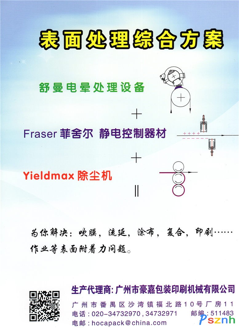 廣州市豪嘉包裝印刷機械有限公司從19世紀80年代就已經開始從事電暈處理行業。從代理進口設備,到全國內自主研發——生產——銷售。一直以專業的態度為薄膜生產、加工;印刷行業服務。并橫向伸延到其他產品,為薄膜、不干膠、復合、涂布、印刷、包裝......等行業提供全方位的解決方案。