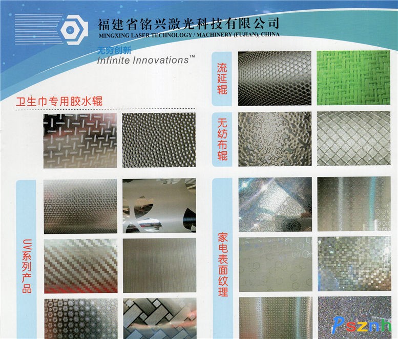 公司核心產品為: 1、開發精工壓紋輥筒,廣泛應用于紙張、布料、墻紙、塑膠以及人造皮革壓紋加工;2、研發制造高端激光制輥系統。