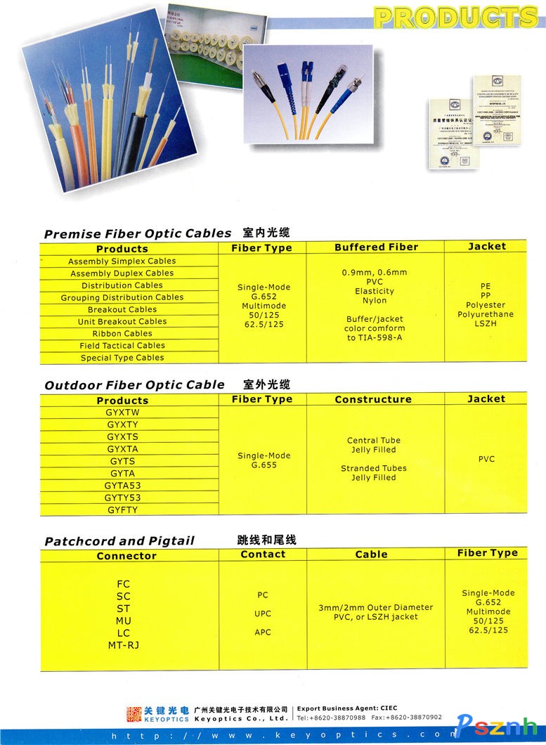 廣州關鍵光電子技術有限公司成立于2001年,是集研發(fā)、生產、銷售于一體的光電子高新技術企業(yè),總部位于廣州經(jīng)濟技術開發(fā)區(qū)。    廣州關鍵光電子技術有限公司秉承技術為本、誠信服務的使命,引進世界一流的生產和檢測設備,研發(fā)生產具有國際先進水平的光電子系列產品。現(xiàn)公司的產品已廣泛應用于電信、廣播電視、地鐵、寬帶數(shù)據(jù)接入、軍事通訊、智能布線、航空、溫度及應變傳感等領域。完善的ISO9001:2000全面質量管理體系,使得公司生產系統(tǒng)、產品質量和客戶服務品質得到保障,公司產品取得了中國信息產業(yè)部電信設備進網(wǎng)許可證,并通過美國UL 實驗室安全認證,通過中國人民解放軍總參謀部野戰(zhàn)光纜組件入網(wǎng)認證、軍用電子元器件質量認證鑒定試驗室的野戰(zhàn)光纜組件檢驗、軍用電子元器件質量認證鑒定試驗室的野戰(zhàn)光纜組件、野戰(zhàn)光纜連接器、船用光纜、光電混裝纜、應急光纜、深海連接器產品均通過霉菌、鹽霧、潮濕檢驗和歐盟RoHS環(huán)保認證。同時,公司堅持科技術興企的方略,貫徹市場引導科研成果產業(yè)化的科研方針,以科技引導未來。現(xiàn)已取得國際、國內專利數(shù)十項。    廣州關鍵光電子技術有限公司正在迅速成為以產品生產的技術優(yōu)勢、產品系列化、優(yōu)質的客戶服務