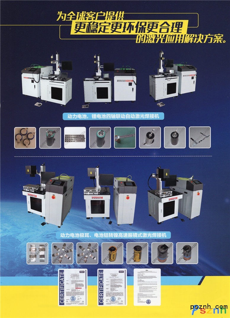 目前公司的主導產品包括:激光點焊機、激光模具燒焊機、吊臂式激光模具燒焊機、光纖傳輸激光焊接機、雙頭光纖激光焊接機、電池激光焊接機、四軸聯動激光焊接機、機器人光纖激光焊接機、手持式光纖激光焊接機、振鏡掃描激光焊接機、廣告字激光焊接機、光纖激光打標機、紫外激光打標機、CO2激光打標機、半導體激光打標機、端泵激光打標機、綠光激光打標機、YAG激光打標機、 激光噴碼機、首飾 激光點焊機、首飾激光打標切割機、貴金屬激光焊接機、手機殼激光焊接機、無縫激光焊機系統、飛行激光噴 碼(標刻)系統、激光雕刻機、光纖激光切割機、YAG激光切割機、CO2激光切割機幾十種工業激光設備并為客戶提供各種規格的飛行激光應用的整套設備。