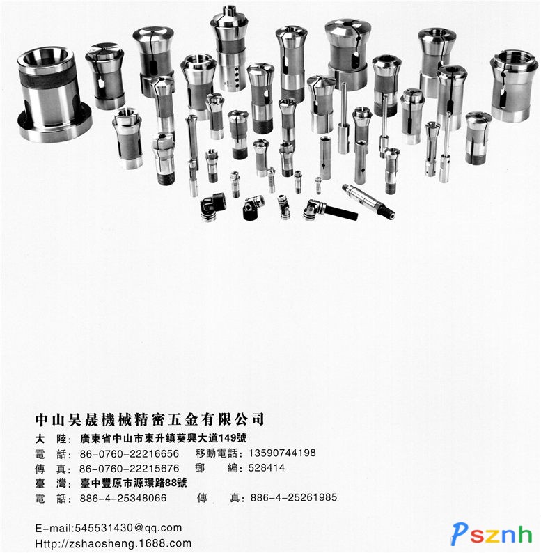 中山市東升鎮昊晟機械精密五金廠_合金夾頭導套_精密軸心_攻牙夾頭筒夾