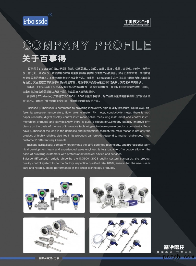 寶雞百事得控制技術有限公司是獨立法人企業,主要生產DPI系列壓力、差壓、液位、溫度sensor,一體化差壓流量計、ph計、電導率儀、數顯控制儀。