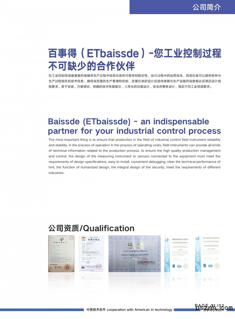 寶雞百事得控制技術有限公司,成立于2014年,公司擁有現代化的生產辦公設施,專利技術,完善的檢測設備,標準的生產工藝,服務于核電與火力發電、金屬、采礦與選礦、水與廢水處理、紙漿與造紙、石油與天然氣的生產和輸送、煉油與石化、化工、食品、制藥、釀酒、飲料、乳制品。