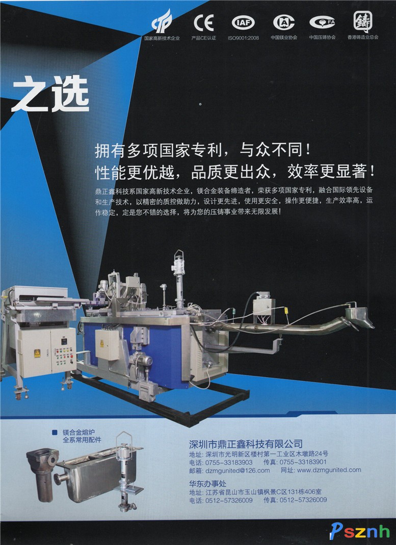 深圳市鼎正鑫科技有限公司座落于改革發(fā)展前沿的都市深圳,專(zhuān)業(yè)從事鎂合金熔爐、熔爐、料壺、坩堝、金屬鎂冶煉、鎂合金壓鑄設(shè)備耗材、鎂合金冶煉精煉設(shè)備及各類(lèi)非標(biāo)鎂合金熔爐等設(shè)備研發(fā)、制造和銷(xiāo)售的科技型企業(yè)。是國(guó)家高新技術(shù)企業(yè)廣東省壓鑄協(xié)會(huì)理事單位、中國(guó)鑄造協(xié)會(huì)的常務(wù)理事單位、香港壓鑄協(xié)會(huì)理事單位。