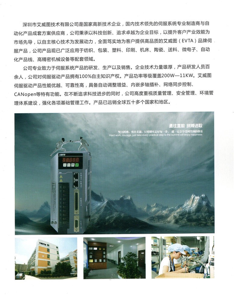 艾威圖技術(shù)有限公司專(zhuān)業(yè)致力于伺服系統(tǒng)產(chǎn)品的研發(fā)、生產(chǎn)、銷(xiāo)售,及自動(dòng)化配套產(chǎn)品的銷(xiāo)售。提供完善的培訓(xùn)計(jì)劃及高水準(zhǔn)的應(yīng)用支持,為客戶最大限度的發(fā)掘產(chǎn)品附加值。艾威圖擁有一流的生產(chǎn)設(shè)備與工藝檢測(cè)流程,嚴(yán)格執(zhí)行ISO9001質(zhì)量管理體系認(rèn)證,科學(xué)規(guī)范運(yùn)用質(zhì)量管理方式確保產(chǎn)品的高品質(zhì)出品。艾威圖始終貫徹‘至誠(chéng)至精’、‘全心全意’的服務(wù)精神,通過(guò)持續(xù)不斷的進(jìn)取精神,為民族伺服行業(yè),工業(yè)自動(dòng)化進(jìn)程貢獻(xiàn)力量。