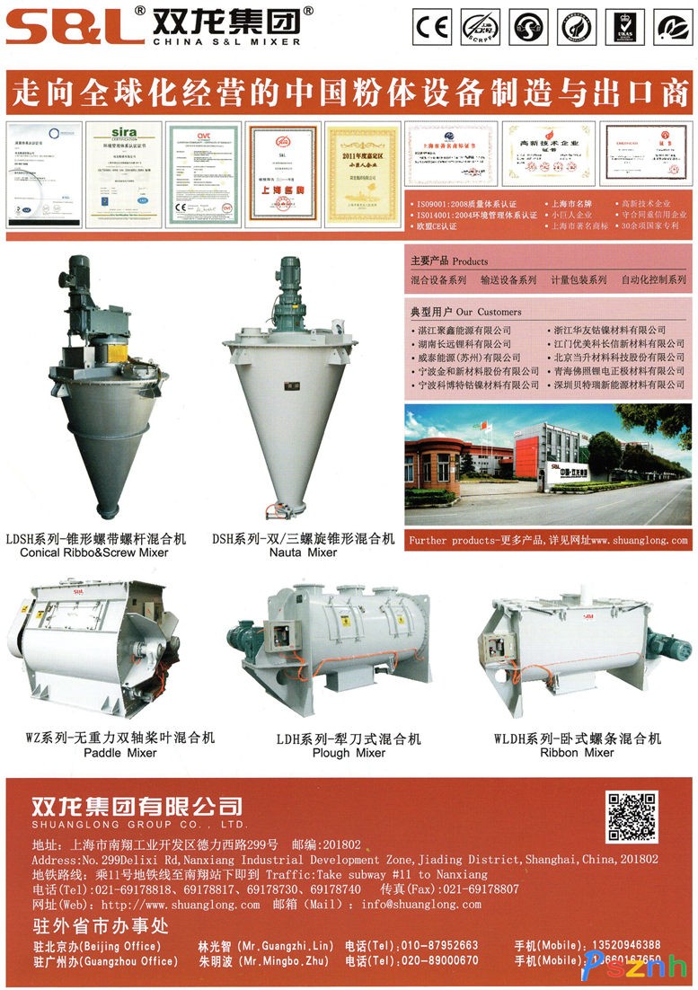 雙龍是上海市高新技術企業,雙龍商標是“上海市著名商標”,通過了ISO9001國際質量體系認證、ISO14001環境體系認證、歐盟CE認證,擁有一二類壓力容器制作許可證書,主要產品榮獲“上海市名牌產品”稱號。雙龍擁有幾十年開發經驗的研發團隊和先進的專業生產設備和檢測設備,包括研發中心、實驗室、精密車床、等離子自動切割機、自動焊機、自動打磨機、噴砂房、X光焊縫檢測等;從2001年起,雙龍與世界知名的粉體設備制造商廣泛開展技術交流與合作,包括定制OEM設備等,由此雙龍的制造技術得到了突飛猛進的提高,部分技術已經達到了國際一流的水平。