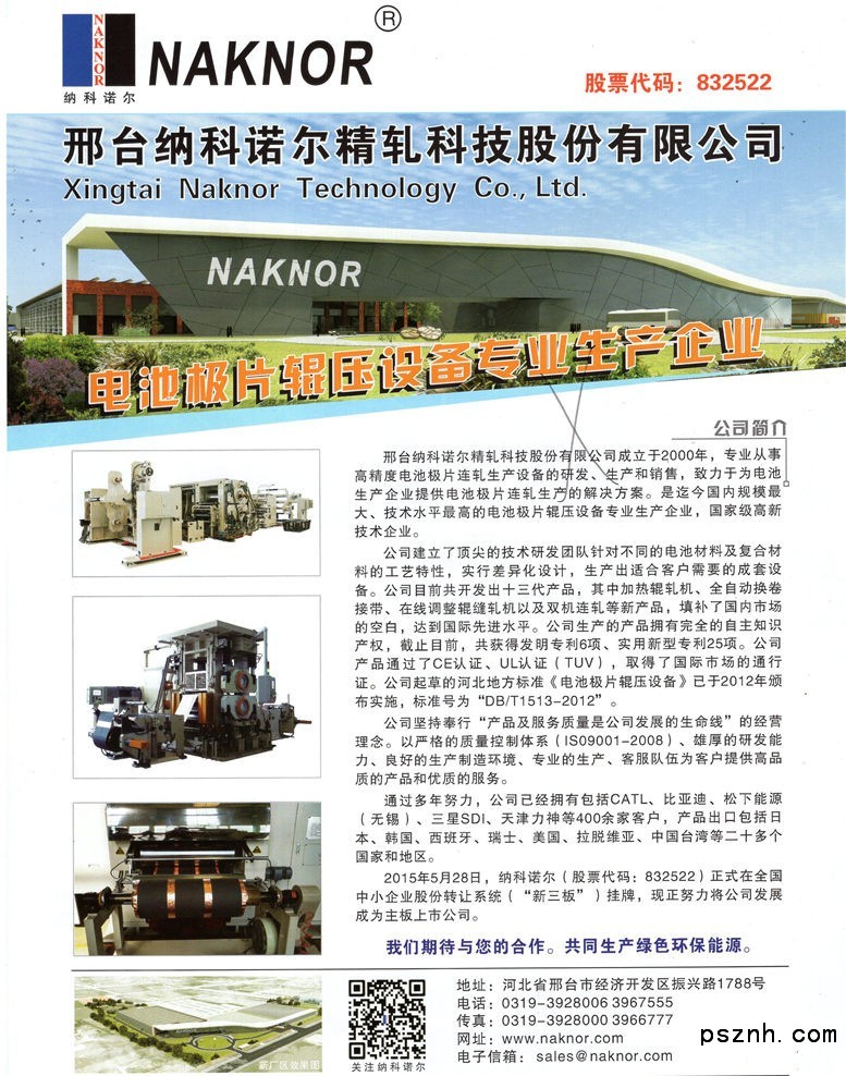 邢臺納科諾爾精軋科技股份有限公司_鋰離子電池_鎳氫電池_超級電容器_極片輥壓機_輥壓機 深圳電池展