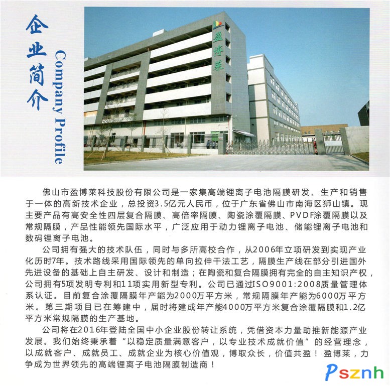 公司將在2016年登陸全國中小企業(yè)股份轉(zhuǎn)讓系統(tǒng),憑借資本力量助推新能源產(chǎn)業(yè)發(fā)展。我們始終秉承著“以穩(wěn)定質(zhì)量滿意客戶,以專業(yè)技術(shù)成就價值”的經(jīng)營理念,以成就客戶、成就員工、成就企業(yè)為核心價值觀,博取眾長,價值共盈! 盈博萊,力爭成為世界領(lǐng)先的高端鋰離子電池隔膜制造商!