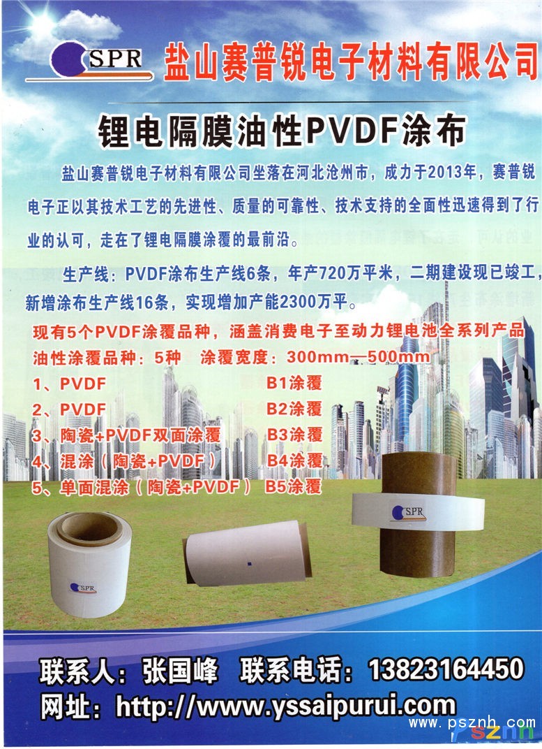 生產線:PVDF涂布生產線6條,月產60萬平米。二期實現增資2000萬元,實現增加產能2160萬平米,計劃2016年投產,現有5個PVDF涂覆品種,涵蓋消費電子至動力鋰電池全系列產品,滿足卷繞及疊片電池的使用需求同時針對高能量密度體系,開發成功了陶瓷+PVDF油性涂層的專有體系;油性單面涂層。