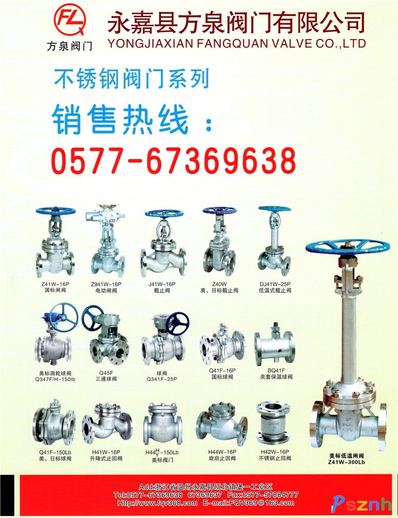 永嘉縣方泉閥門有限公司是以生產全焊接球閥、不銹鋼閥門系列為主導產品的研制、開發、生產和銷售的綜合性閥門企業。