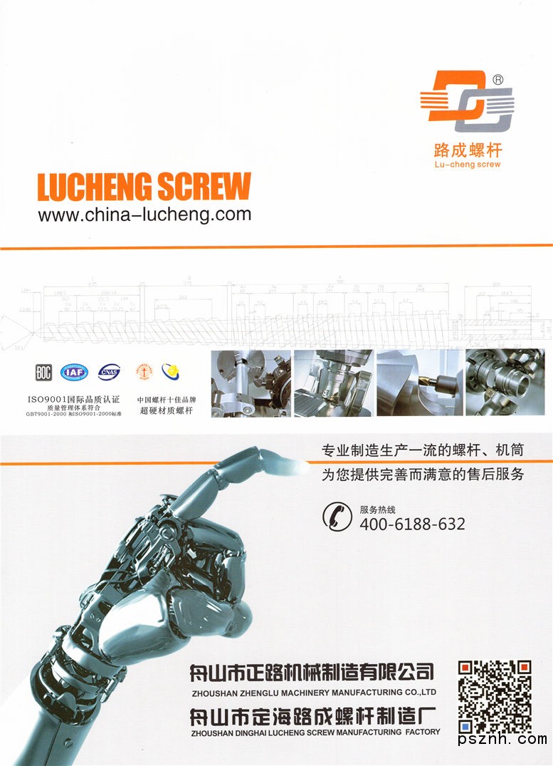 舟山市定海路成螺桿制造廠是國內頗具影響,專業生產各種類型,規格螺桿及其機筒,平形雙螺桿擠出機,異型塑料管生產線的廠家。