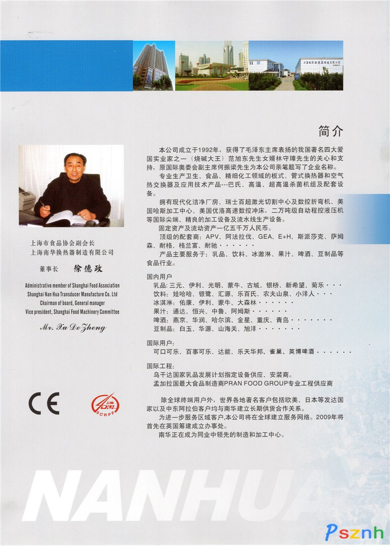 專業生產衛生、食品、精細化工領域的板式、管式換熱器和空氣熱交換器及應用技術產品---巴氏、高溫、超高溫殺菌機組及配套設備。