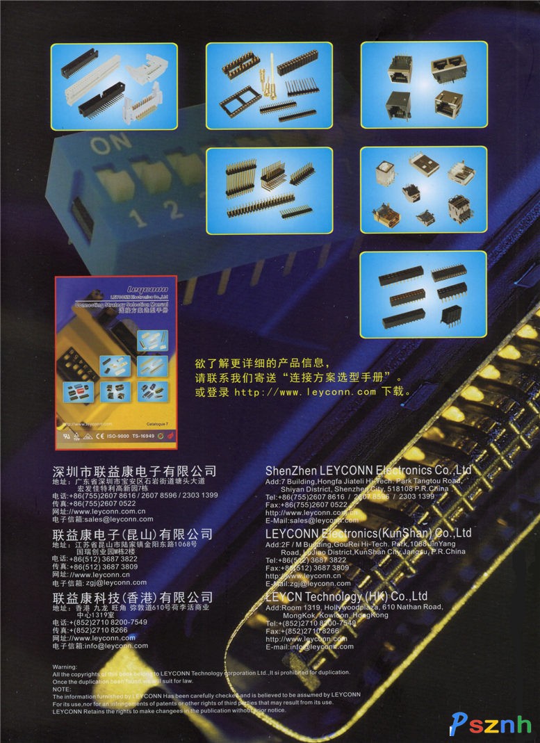深圳市聯益康電子有限公司_條形(壓接式)連接器_圓形連接器_PCB連接器_板對板連接器_FFC/FPC/薄膜電纜連接器_電纜連接器_電腦連接器_USB連接器_手機連接器_電源連接器點擊:1004 評論:0 查看原圖