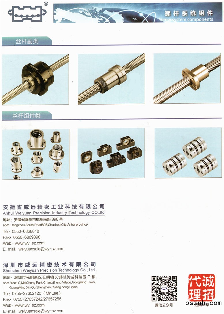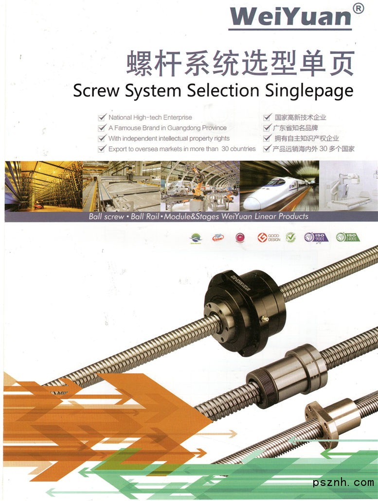 深圳市威遠精密技術有限公司在深圳成立,旗下全資子公司—安徽省威遠精密工業科技有限公司。 “受之托,忠之事”的宗旨是我們的立業之本;“市場是山,威遠是樹;樹扎根于山,根深葉茂;山有樹裝扮,美麗怡人”是我們雙贏致勝,共同發展的戰略。  十六年來,我們心無旁鶩,傾心致力于滾珠絲杠的研發制造。將誠實﹑素質﹑效率奉獻給用戶,獲得了用戶的信任﹑委托﹑攙扶。現任“廣州機床工具行業協會”副會長企業;獲得國家商務部知識產權局聯合頒發的“擁有自主知識產權企業” 稱號,企業獲得的多項榮譽“廣東省優秀自主品牌”、“中國滾動功能部件協會會員”、“深圳機械行業協會常務理事”、“ISO9001認證”、“ISO14001認證”、獲第9、10、11等多屆中國高薪技術成功交易會“優秀產品獎”、中國同行專利數第一,并獲授權“滾珠絲杠”、“滾動導軌副”、“直線運動單元”三項發明專利。
