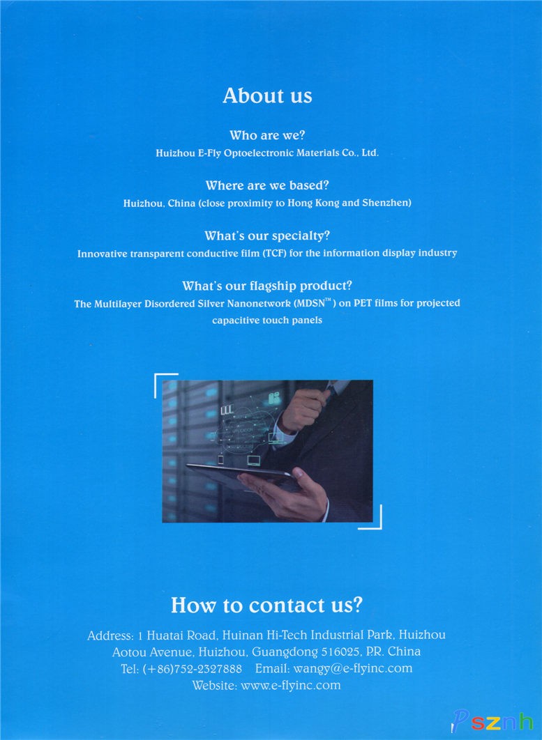 惠州易暉光電材料股份有限公司,于2011年初成立于仲愷(國家級)高新區,是國家高新技術企業、中國薄膜光伏產業聯盟副主席單位以及中國觸控協會會員。