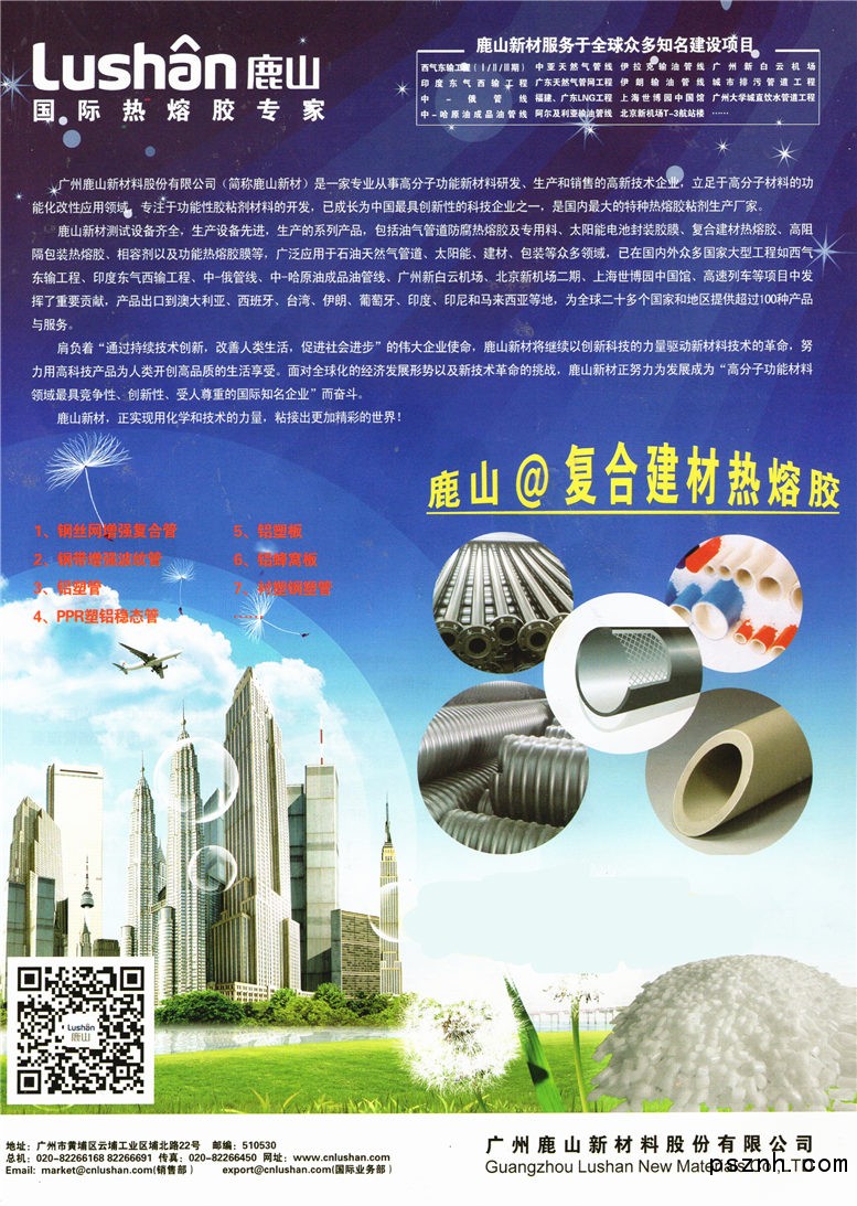 廣州鹿山新材料股份有限公司(簡稱:鹿山新材)是一家提供高分子功能新材料的高新技術企業,致力于用化學和技術的力量粘接出更加精彩的世界。 從創立之初,鹿山新材就確立了“通過持續技術創新,改善人類生活,促進社會進步”的偉大使命。利用領先的膠粘劑理論與技術,開發出切合市場需求的系列產品,從功能性聚烯烴熱熔膠到太陽能電池封裝膠膜,從功能熱熔膠膜到相容劑,廣泛應用于石油天然氣管道、復合建材、高阻隔包裝、太陽能電池、汽車等多個領域,為全球二十多個國家和地區提供了超過100種的產品與服務。未來10年,鹿山新材將繼續以高分子材料技術為基礎,以創新科技驅動社會進步,努力用高科技產品為人類開創高品質的生活享受。 基于“科技,因您而變”的創新理念,鹿山新材已經成為中國最具創新性的科技企業之一。面對全球化的經濟發展形勢以及新技術革命的挑戰,鹿山新材正蓄勢待發,為發展成為“高分子功能材料領域最具競爭性、創新性、受人尊重的國際知名企業”而奮斗。