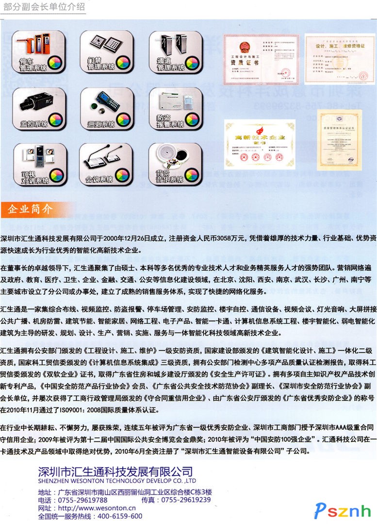 公司擁有行業(yè)健全的資質(zhì),建設(shè)部《建筑智能化設(shè)計(jì)與施工一體化》壹級(jí)資質(zhì)、公安廳《工程設(shè)計(jì)、施工、維護(hù)》安防壹級(jí)資質(zhì)、中國(guó)電子信息《計(jì)算機(jī)信息系統(tǒng)集成》叁級(jí)資質(zhì),《雙軟企業(yè)》,通過(guò)了ISO90012008國(guó)際體系的認(rèn)證。并獲得了多項(xiàng)政府及行業(yè)的榮譽(yù)稱(chēng)號(hào),是中國(guó)安防百?gòu)?qiáng)企業(yè),廣東省重合守信用企業(yè)。公司分別在北京、湖南、湖北、山東、廣西、新疆等地成立多家分公司和分支機(jī)構(gòu),并配備專(zhuān)職技術(shù)客服人員為客戶(hù)提供7*24小時(shí)金牌服務(wù)。