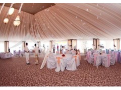 | 產品介紹 | 1):篷房跨度由3米-40米不等定做; 2):長度沒有限制,按照單位長度3m/5m為一組無線延長; 3):節距以3米或者5米為主; 4):常規邊高為2.5米/4米可以根據客戶的要求定做不同的邊高。 框架部分: 1.主框架主要是以高強度的鋁型材為主,連接部分為經過熱鍍鋅處理的鐵件為主。 2.鋁型材表面處理有兩種(氧化或者氟碳漆),鐵件表面處理全部采用熱鍍鋅。 篷布: 1):頂布和圍布主要采用經過雙表圖層處理,高強度滌綸長絲制作的PVC. 2):篷布主要功能有防水、防火、防紫外線、并且有自潔功能。 3):防火等級:B1級(相當于國外的M2)(難燃,離火三秒自滅)具有相關證書。 4):篷房規格主要有:580g/m2、660g/m2、7500g/m2、8500g/m2、900g/m2、等等。 |