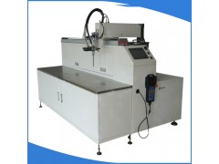 一、產(chǎn)品介紹: 自動灌膠機是在完成AB膠自動配比自動混合的前提下加裝機械手進行自動灌注,可對排例好的產(chǎn)品進行自動灌膠。設(shè)備配比精準,混合均勻、效率高穩(wěn)定性好操作簡單。為更好的發(fā)揮設(shè)備優(yōu)勢,方便操作,全自動灌膠機還配置了自動清洗功能使清洗工作更方便、更快捷。 1)自動灌膠機可適用于不同規(guī)格的產(chǎn)品,能夠很好的控制膠量,不會因膠量過多或過少影響產(chǎn)品的質(zhì)量。可以很方便地任意更改涂膠方式以及涂膠路徑, 2)膠水和固化劑實現(xiàn)自動配比自動混合自動打出,不需人工稱重量,不需人工攪拌分配,無需擠膠瓶或注射針筒。 3)解決了因人工稱膠調(diào)膠而造成膠水用不完凝固的浪費現(xiàn)象,解決了人工棍棒攪拌時帶入氣泡而需要抽真空的現(xiàn)象 4)機器全自動定量灌注,微電腦控制膠量,膠量均勻一致,解決了人工涂膠造成每個產(chǎn)品膠量不一致而影響產(chǎn)品質(zhì)量的現(xiàn)象。