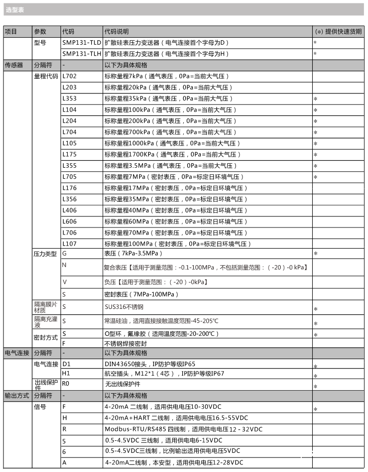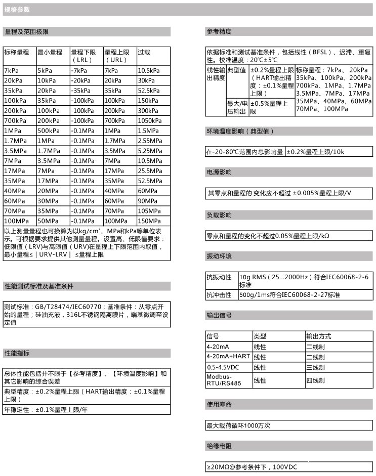- 4-20mA,4-20mA+HART,0.5-4.5VDC