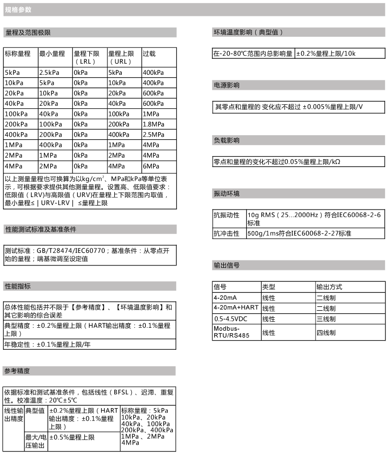 - 4-20mA,4-20mA+HART,0.5-4.5VDC