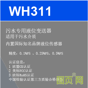 污水專用液位變送器WH311專為 污水介質持續液位測量而設計,其核心部件采用 國際知名品牌液位傳感器經合理精密的結構設計 及厚膜技術溫度補償、信號放大、V/I轉換,對 不銹鋼外殼進行全密封焊接,從而制成工業標準 的4-20mA信號輸出且性能穩定可靠的全固態產品 。 WH311污水專用液位變送器專門為污水介質而 特殊設計,有效解決了污水液位測量困難的問題。
